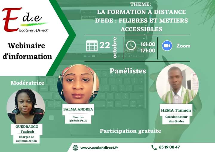Une session de webinaire adressée au public donne l'opportunité de mieux découvrir l'école ainsi que ses filières et métiers.